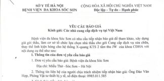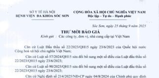THƯ MỜI BÁO GIÁ GÓI THẦU: IN SỔ KHÁM BỆNH, TÚI...