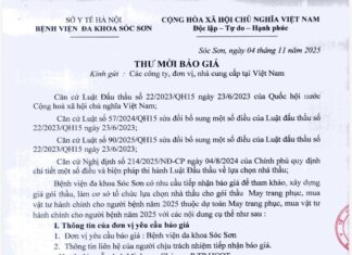 Thư mời báo giá một số vật tư tiêu hao trong...