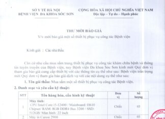 Thư mời báo giá: Một số trang thiết bị phục vụ...