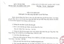 Thư mời báo giá: Thu gom, vận chuyển và xử lý chất thải y tế nguy hại của Bệnh viện đa khoa Sóc Sơn năm 2026 Share on Facebook Tweet on Twitter Cụ thể: 2025101014220100062_251010_163852